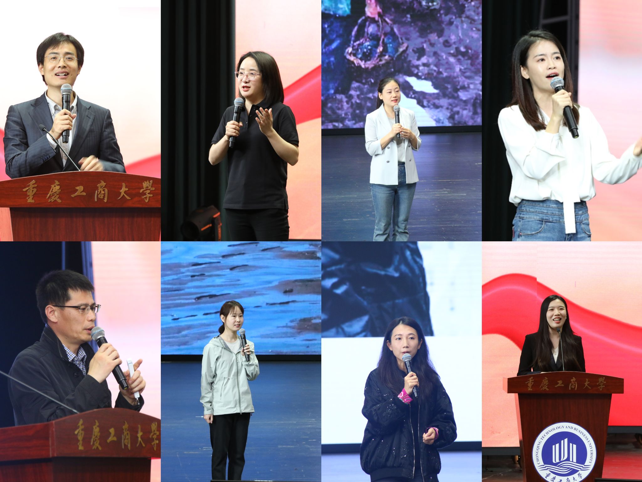 在报告会环节,高文成、田佳佳、赵洪潭、牛宇琦、王文志、游凯、张素、熊捷8位记者分享了他们亲历亲见亲闻亲为的新闻故事,为师生带来了一场催人奋进、感人泪下、热血激昂的巡讲报告。