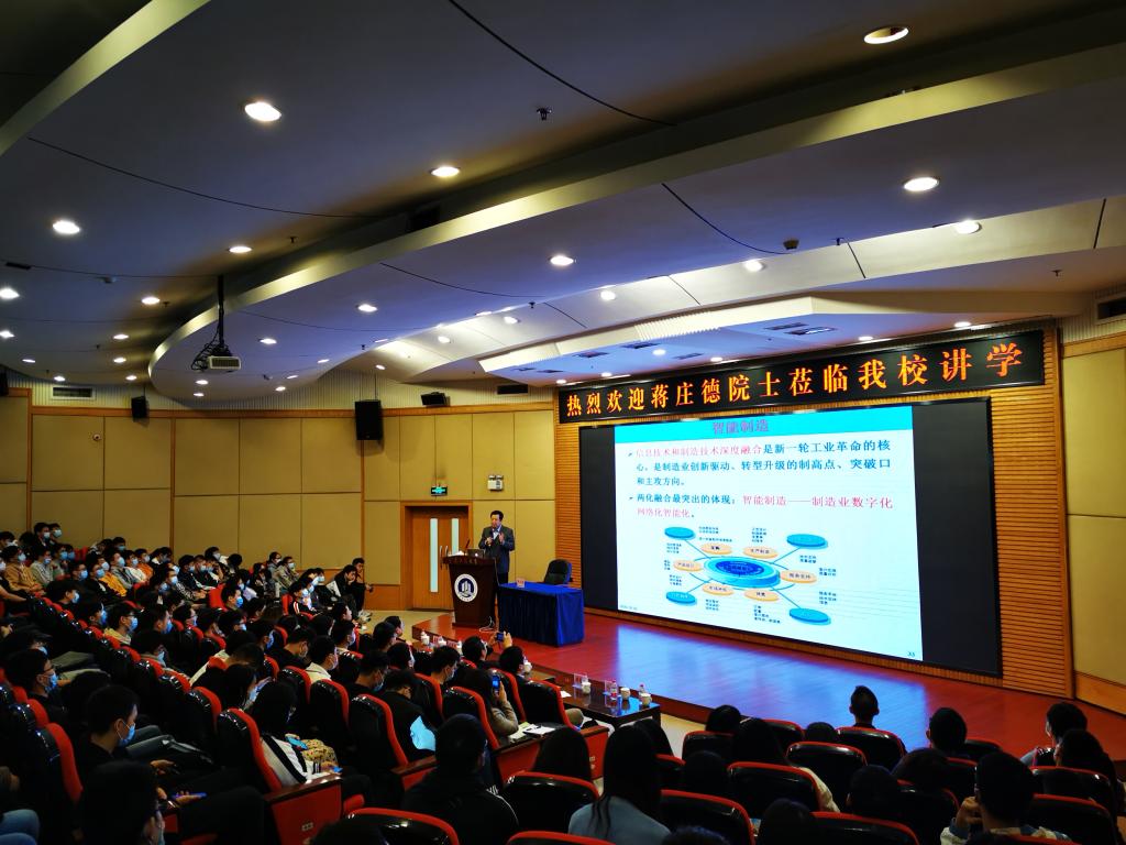 10月10日上午,中国工程院院士、西安交通大学蒋庄德教授一行在威尼斯官网院士专家工作站驻站工作期间,为学校师生作了题为“智能制造与先进传感技术”的学术报告。副校长赵骅,人工智能学院分党委书记何希平、院长唐亮贵、副院长秦华锋,以及人工智能学院和机械工程学院部分青年教师、研究生、本科生参加了本次讲座。副校长李敬陪同参观了合作企业。